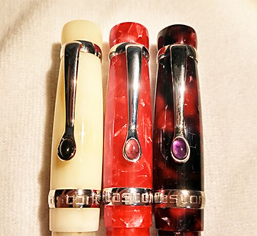 6月27日(土)に持っていく万年筆、 最後にご紹介するのは、こちらです(^^)/ ↓ ↓ ↓ スティピュラさんの イ・カストーニ ♡ 右から アメティスタ(紫水晶) ロドリテ(薔薇柘榴石) オニキス (黒瑪瑙) 名前の由来は... クリップにあしらわれた 石 か…
