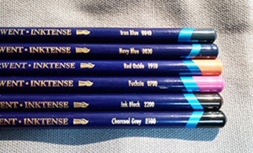 前回の ようやく半分w - 道化は踊る に引き続き、 ダーウェントさんの インクテンス 四角塗り でございます♡ いざ、後半戦! ...というわけで、今宵はこちらの6本で(^^)/ ↓ ↓ ↓ こちらがそのまま塗ったところ。 ↓ ↓ ↓ こちらは、筆を使って水で溶か…