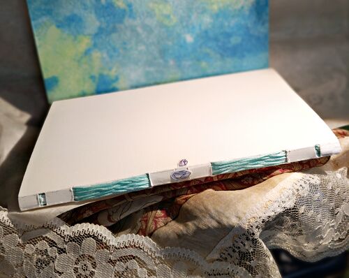 〈『やまなし』を綴じませう〉 シリーズ第2弾 ロウ引きの紙を表紙にドイツ装です♡ ...と行きたい所でしたが かがり台を組み立てるのが面倒だったので かがり台不要の方法で簡単に(^^; ↓ ↓ ↓ 久しぶりだったので 最初の一折の糸の通し方を思い出すの…